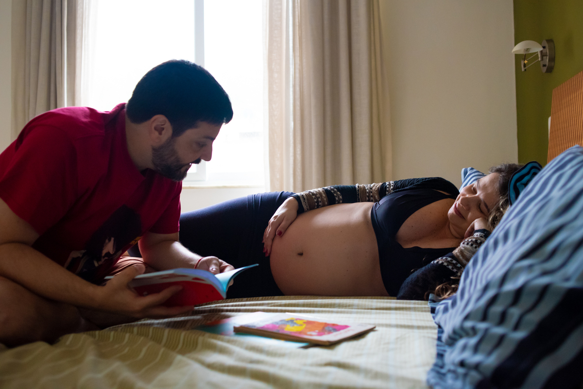 Como ele contava histórias para ela ouvir no quentinho do útero e cuidava da Luíza com massagens para hidratar a pele da barriga e diminuir o inchaço dos pés...